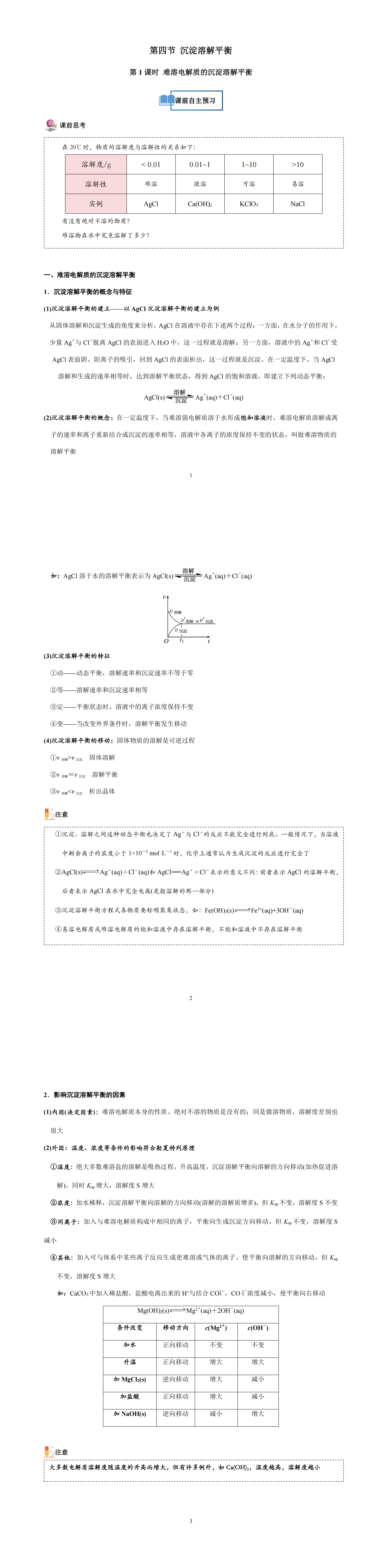 2024-2025学年高二化学选择性必修1(人教版2019)第三章 第四节 第1课时 难溶电解质的沉淀溶解平衡(讲义及解析).pdf