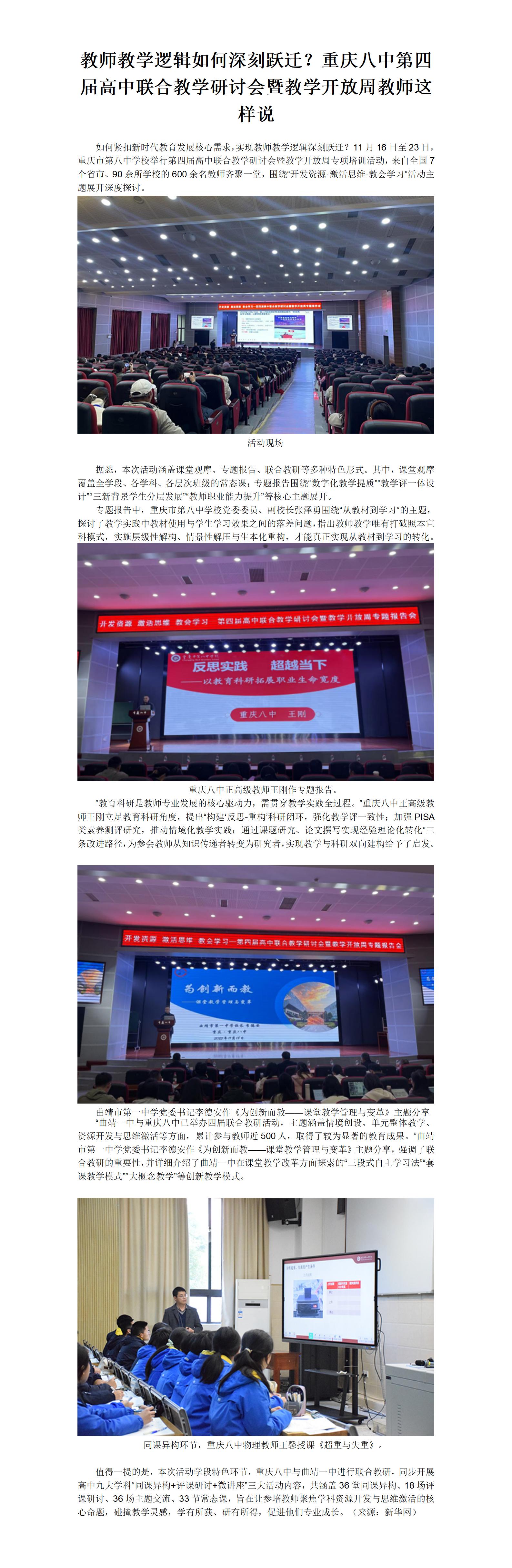 教师教学逻辑如何深刻跃迁?重庆八中第四届高中联合教学研讨会暨教学开放周教师这样说