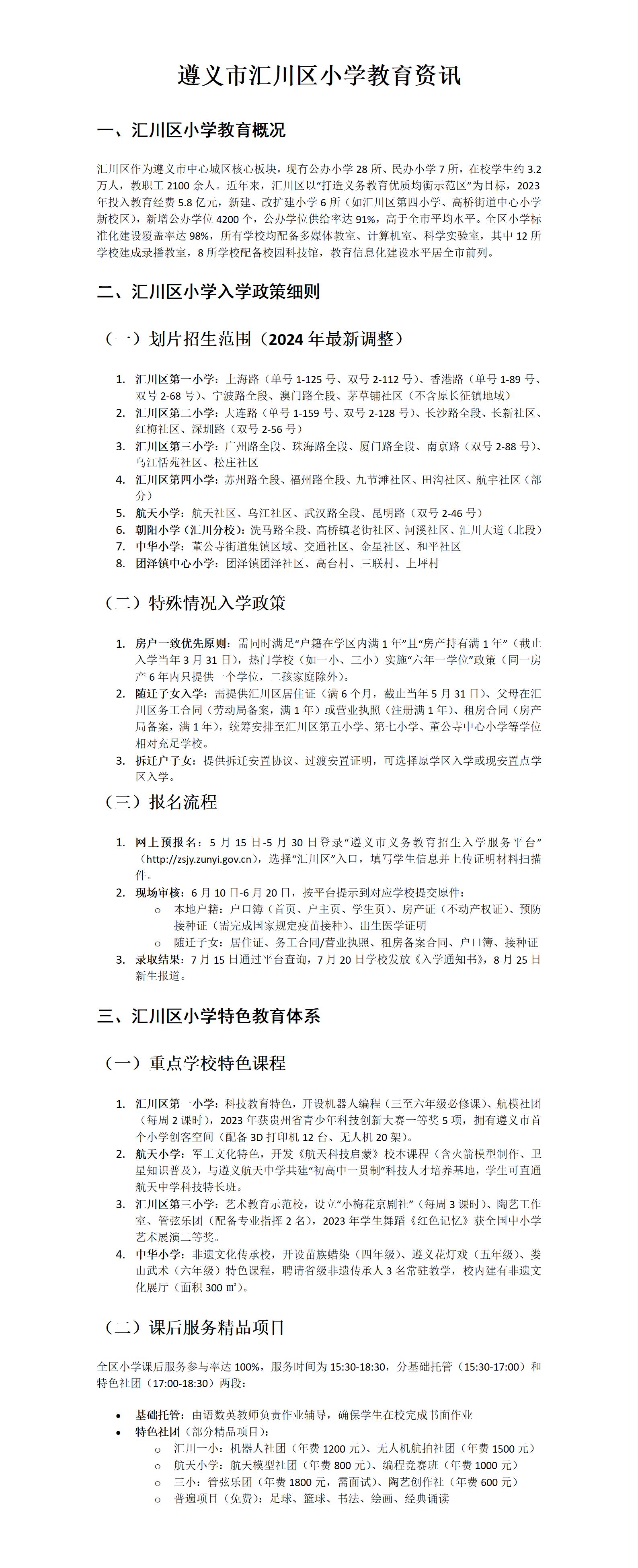 遵义市汇川区小学教育资讯
