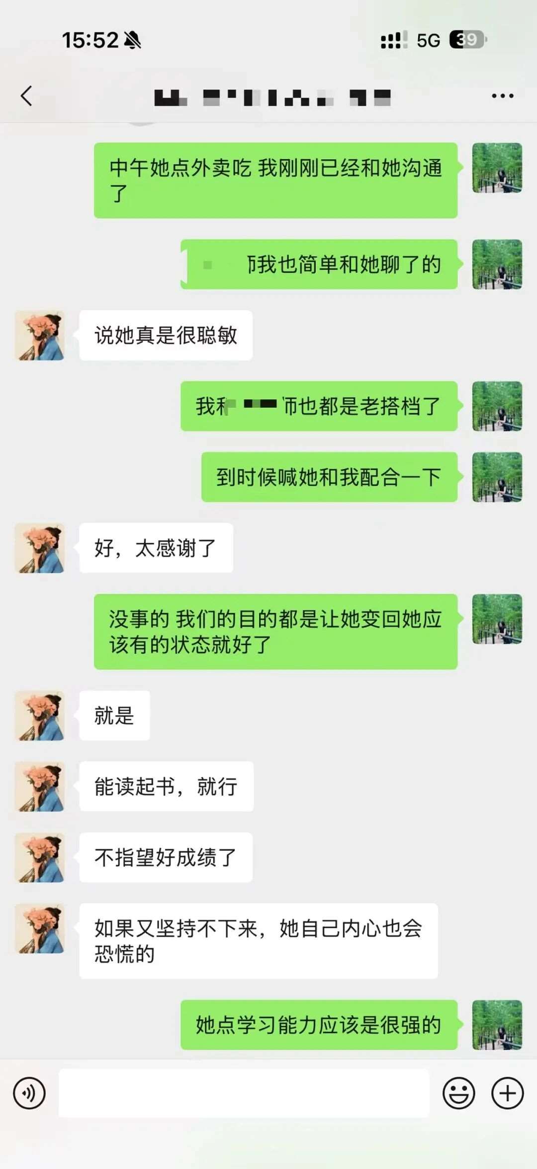 小馨回家的路上,我再次致电她妈妈,把沟通情况详细反馈给她,并建议如果小馨主动交流,希望她能顺势回应,多给孩子一些台阶。妈妈也一直在向我表达感谢。