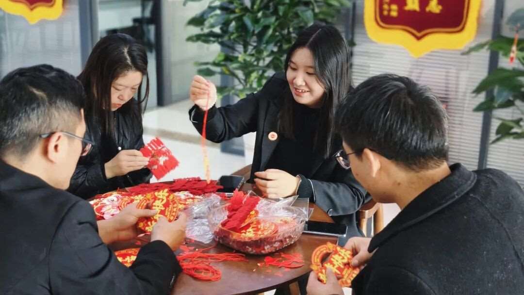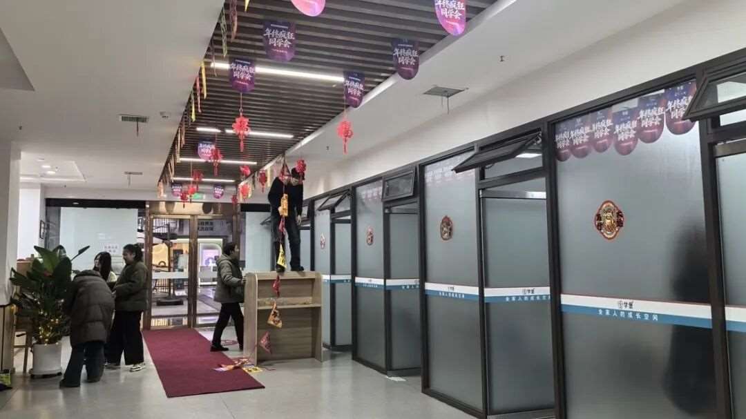 2月6日,金东方集团老城校区全体教职工共同开展新年氛围布置活动。
