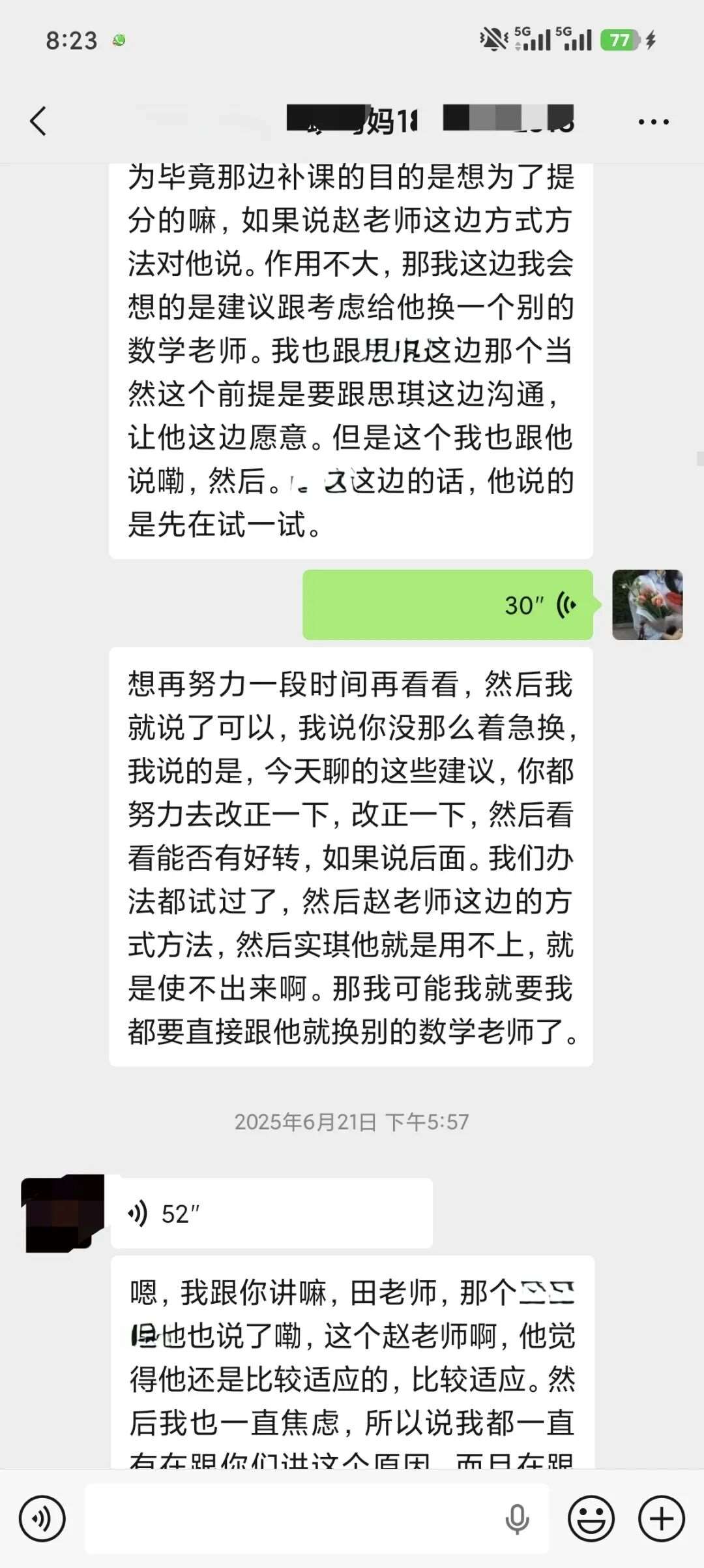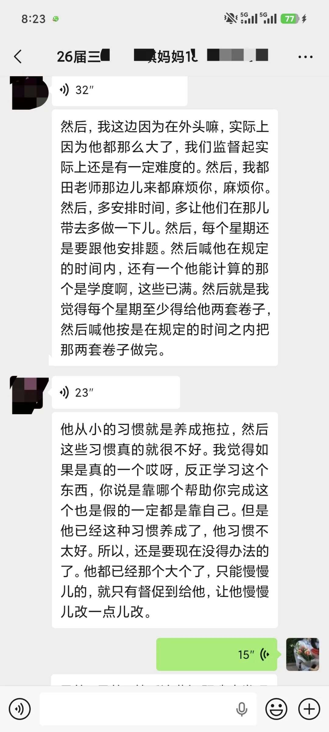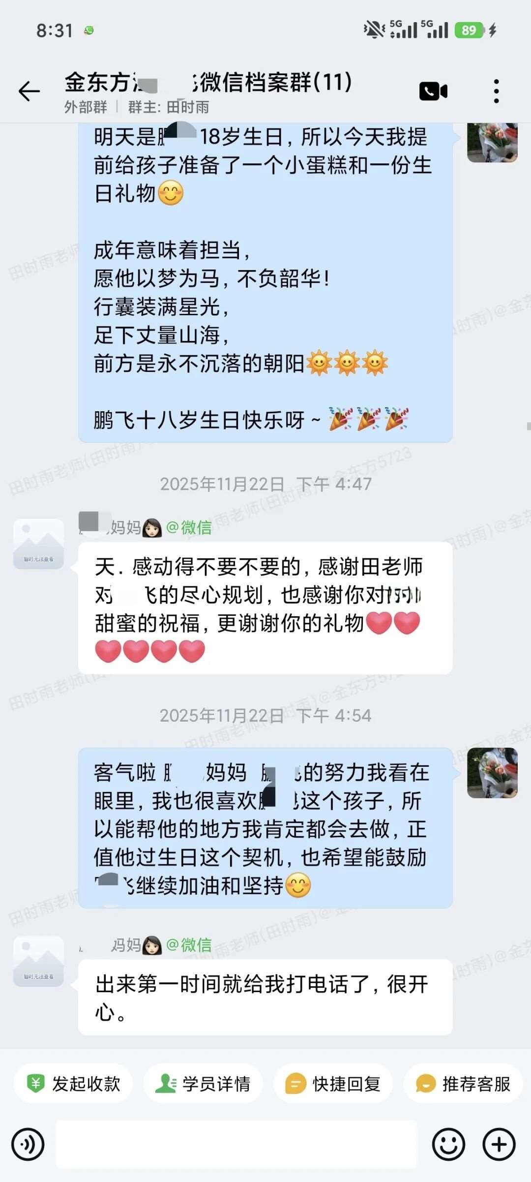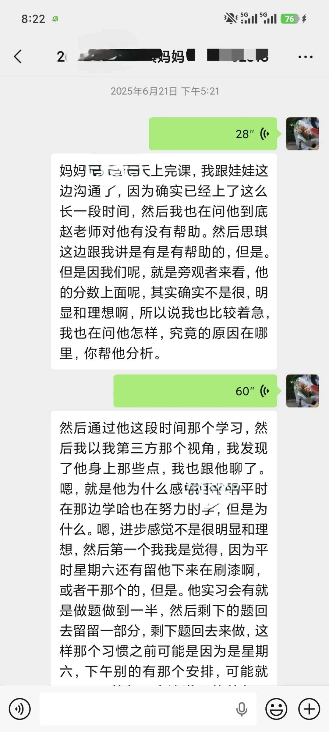 每晚不管多晚,我都会跟进他的作业情况,遇到家长发来的疑问,哪怕深夜十点也及时回复。还特意建了个小群,把“今天公式默写正确率”“主动找数学老师问了两道题”这类点滴进步同步给家长。家长从最初的焦虑试探,慢慢变成了积极配合,每天也会在群里分享孩子的学习状态。