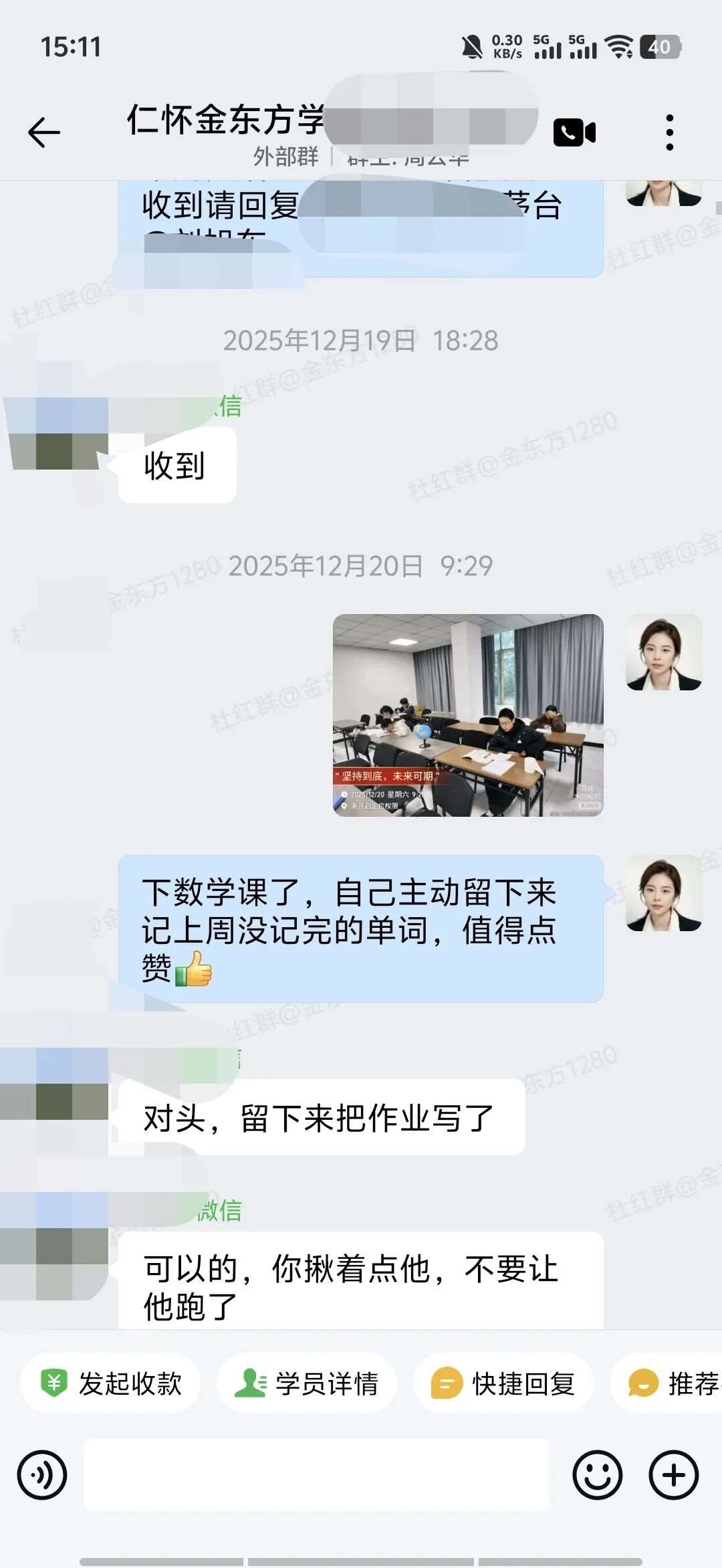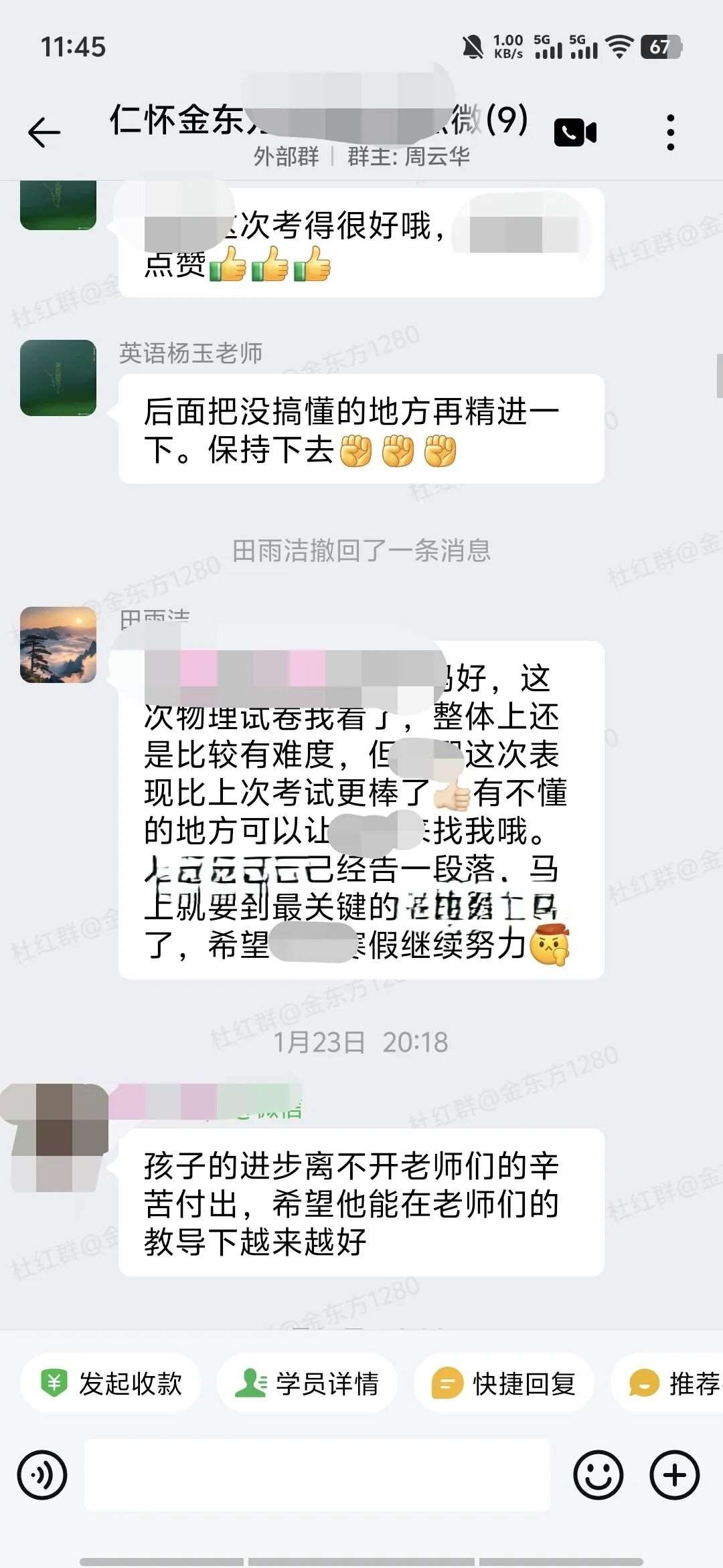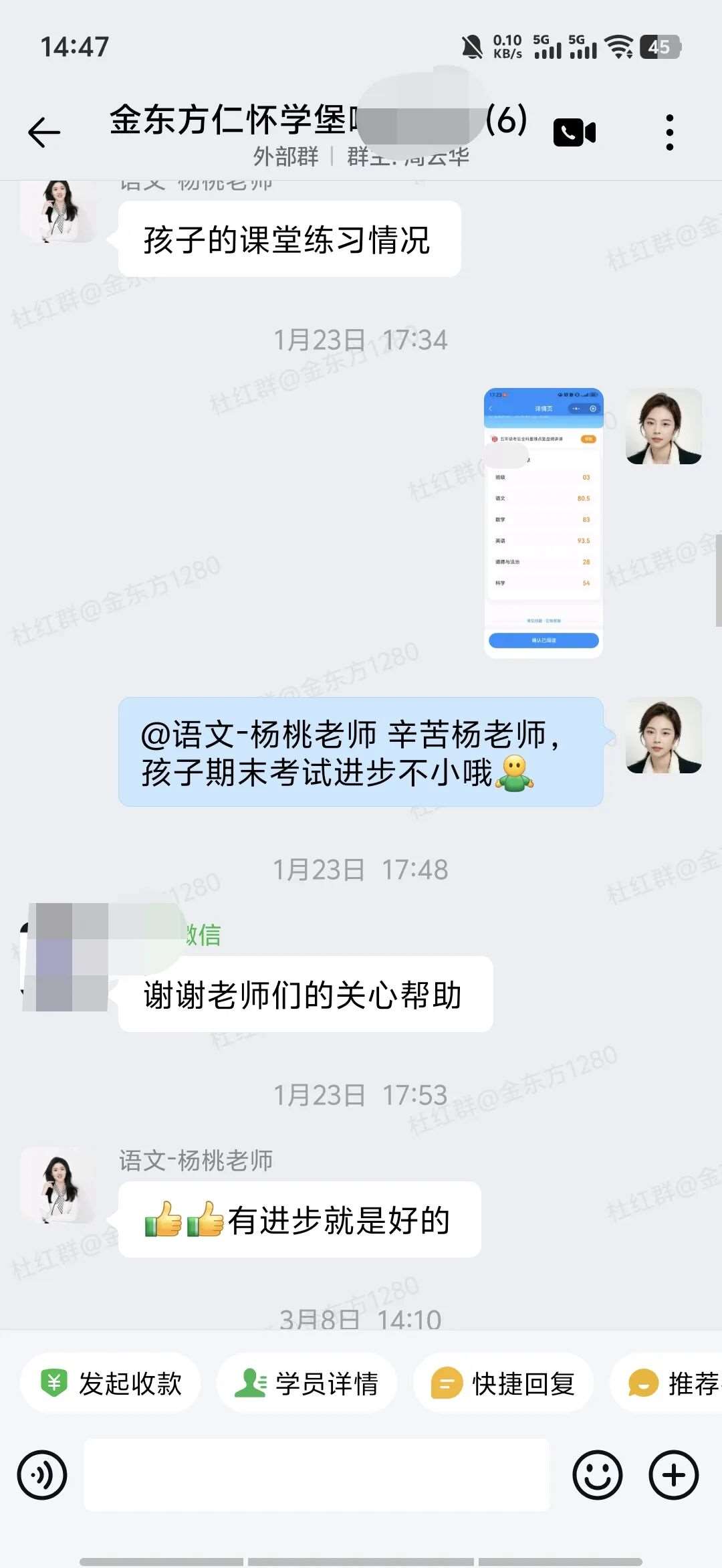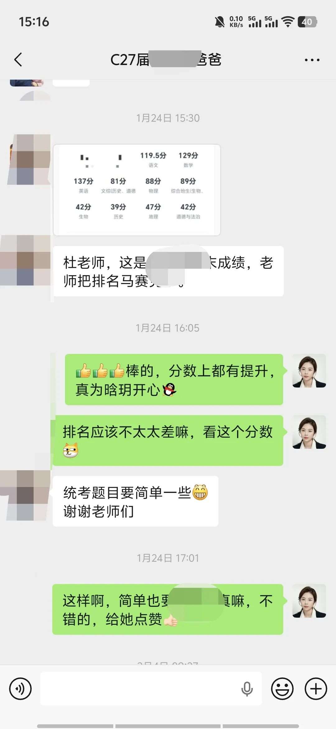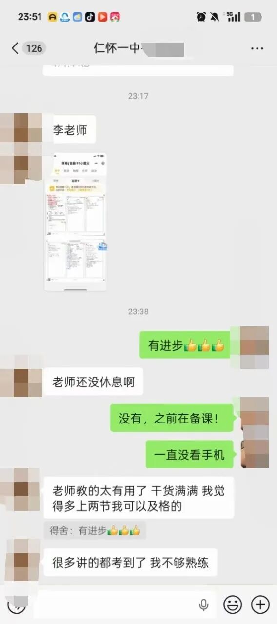 我每周下课后会陪着他完成作业,用拍照检查的方式帮他改掉敷衍习惯;大考后会带着他细致分析试卷,一起规划学习目标;私下会跟他聊天谈心,引导他把这份认可与信任转化为学习的动力,用轻松玩笑的方式去纠正他吸烟等不良习惯;还会随时和家长同步他的状态,家校携手,共同引导。